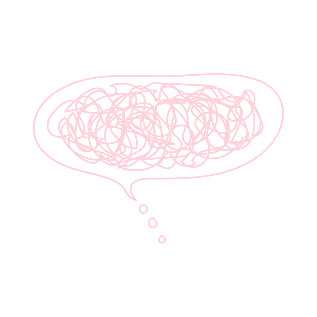 light pink illustration of a thought bubble with scribble inside it