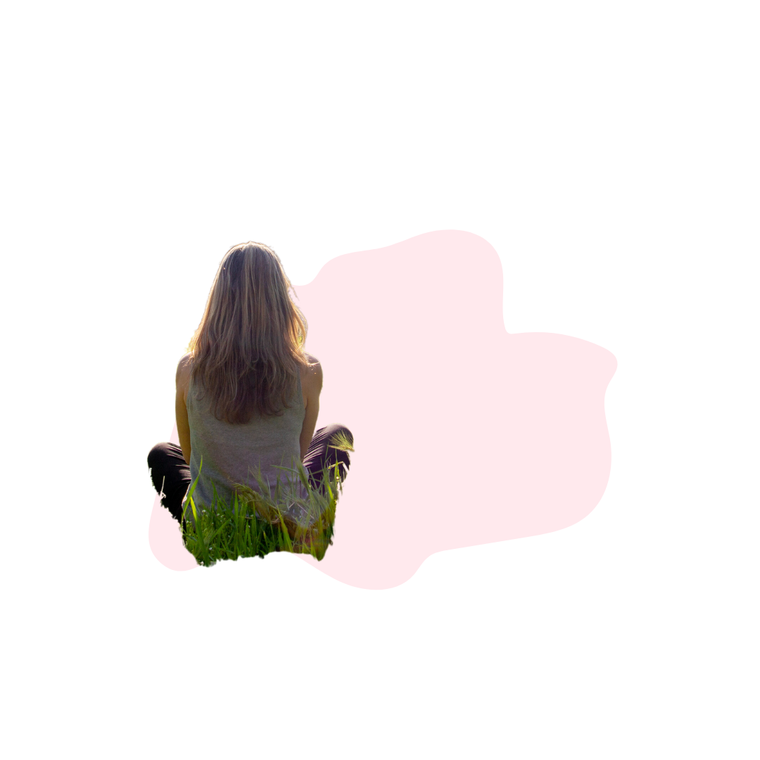 Jen Conlin seated in grass with light pink shape